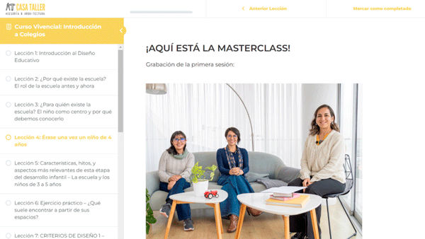 - Las lecciones son dictadas por especialistas en arquitectura y educación.
